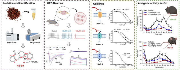 圖2. 花椒來(lái)源的離子通道抑制劑HJ-69及其鎮痛活性研究