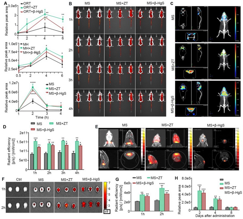 進(jìn)一步體內檢測證實(shí),HgS金屬制劑能夠促進(jìn)多種小分子藥物入腦,尤其是能夠將MS-275的入腦量提高3倍以上,并能夠促進(jìn)藥物對APP/PS1小鼠的空間學(xué)習和記憶能力的改善作用。體外實(shí)驗更直觀(guān)的觀(guān)測到,金屬制劑能夠在給藥48h后高效的促進(jìn)藥物進(jìn)入人腦微血管內皮細胞,證實(shí)其通過(guò)增量實(shí)現增效的作用機制。
