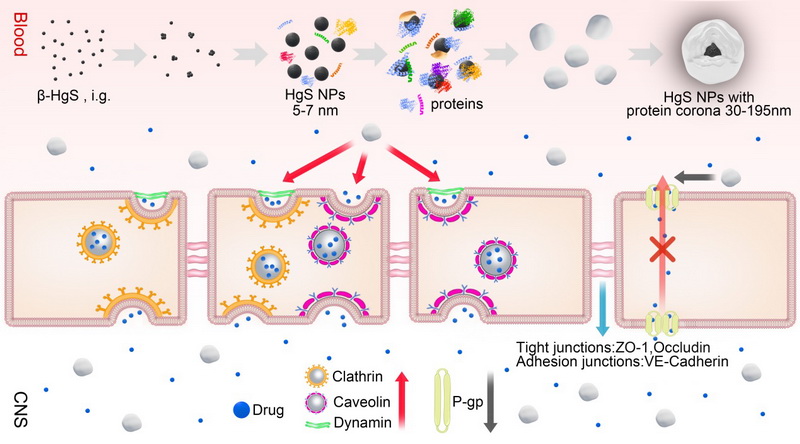 本研究首次揭示了中藏藥核心金屬制劑HgS可以在生物體內合成直徑為30-195nm的納米顆粒,并通過(guò)調節血腦屏障中的內吞作用促進(jìn)不同結構類(lèi)型的藥物進(jìn)入大腦,從而實(shí)現協(xié)同增效作用。特別值得注意的是,我們不僅在體內和體外觀(guān)察到了HgS納米顆粒的生物合成,而且還獲得了高等生物合成的HgS納米顆粒的最清晰和完整的形態(tài)特征。金屬制劑在中醫藥中一直是一種獨特的制劑類(lèi)型。盡管不斷受到質(zhì)疑,但它們在臨床應用中的獨特功效從未被取代。這項研究可能為進(jìn)一步揭示金屬制劑的協(xié)同機制開(kāi)辟新思路。