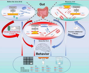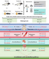 雌雄小鼠應激腦-腸軸調控差異示意圖