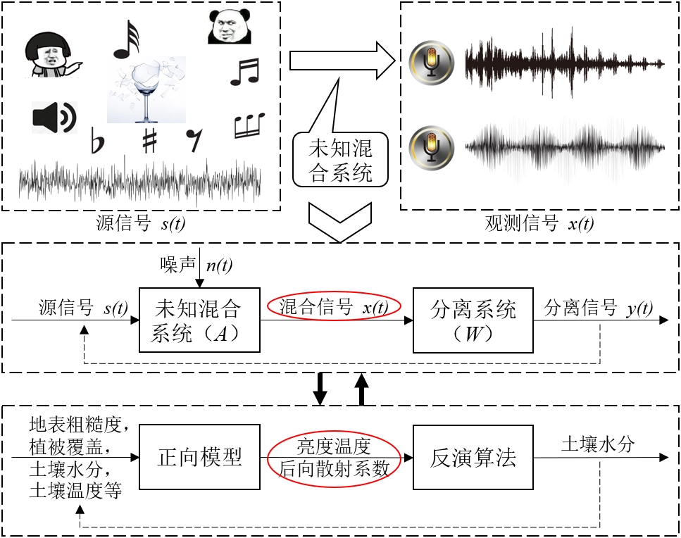 微波遙感可以用來(lái)測量地球表面的土壤水分,但傳感器接收到的微波信號是土壤水分、土壤溫度、地表粗糙度、植被覆蓋和大氣條件等多個(gè)信號的非線(xiàn)性混合。如何從這一復雜、非線(xiàn)性的混合信號中精準地提取土壤水分信息,是遙感反演長(cháng)期關(guān)注的難點(diǎn),尤其當缺乏大量先驗信息(如地表粗糙度和植被等)時(shí),傳統方法往往面臨“病態(tài)反演問(wèn)題”。