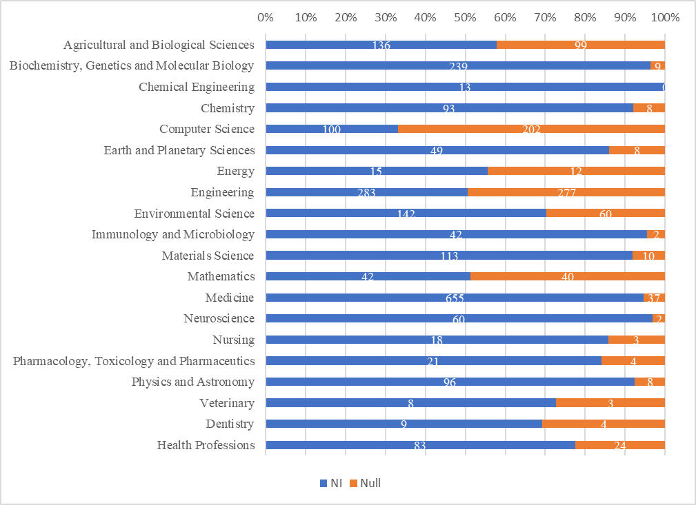 研究發(fā)現,Nature Index期刊的主題覆蓋率達73.19%,在其所覆蓋的18個(gè)學(xué)科門(mén)類(lèi)中均展現出顯著(zhù)的學(xué)術(shù)質(zhì)量?jì)?yōu)勢(綜合被引頻次指標與顛覆性創(chuàng )新指標),各學(xué)科門(mén)類(lèi)中學(xué)術(shù)質(zhì)量占優(yōu)的研究主題平均比例約為90%。Nature Index期刊論文與非Nature Index期刊論文相比,在被引頻次上的優(yōu)勢突出,且優(yōu)于其顛覆性創(chuàng )新水平。同時(shí),現有Nature Index在少數研究領(lǐng)域中仍存在代表性不足的問(wèn)題。該研究不僅為Nature Index團隊及相關(guān)機構開(kāi)展科研評價(jià)工作提供了嚴謹可靠的量化依據,也對完善當前學(xué)術(shù)評價(jià)體系具有一定的現實(shí)價(jià)值。