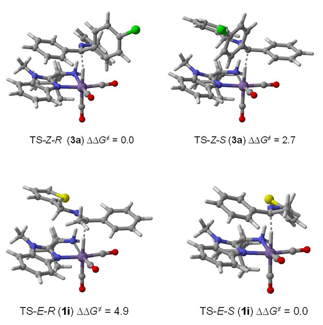 圖2.含雜原子亞胺和雙芳基亞胺的不對稱(chēng)氫轉移過(guò)程的過(guò)渡態(tài)模型