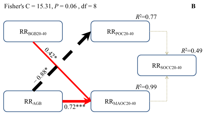 高寒草甸土壤有機碳及其物理組分響應比的結構方程模型
