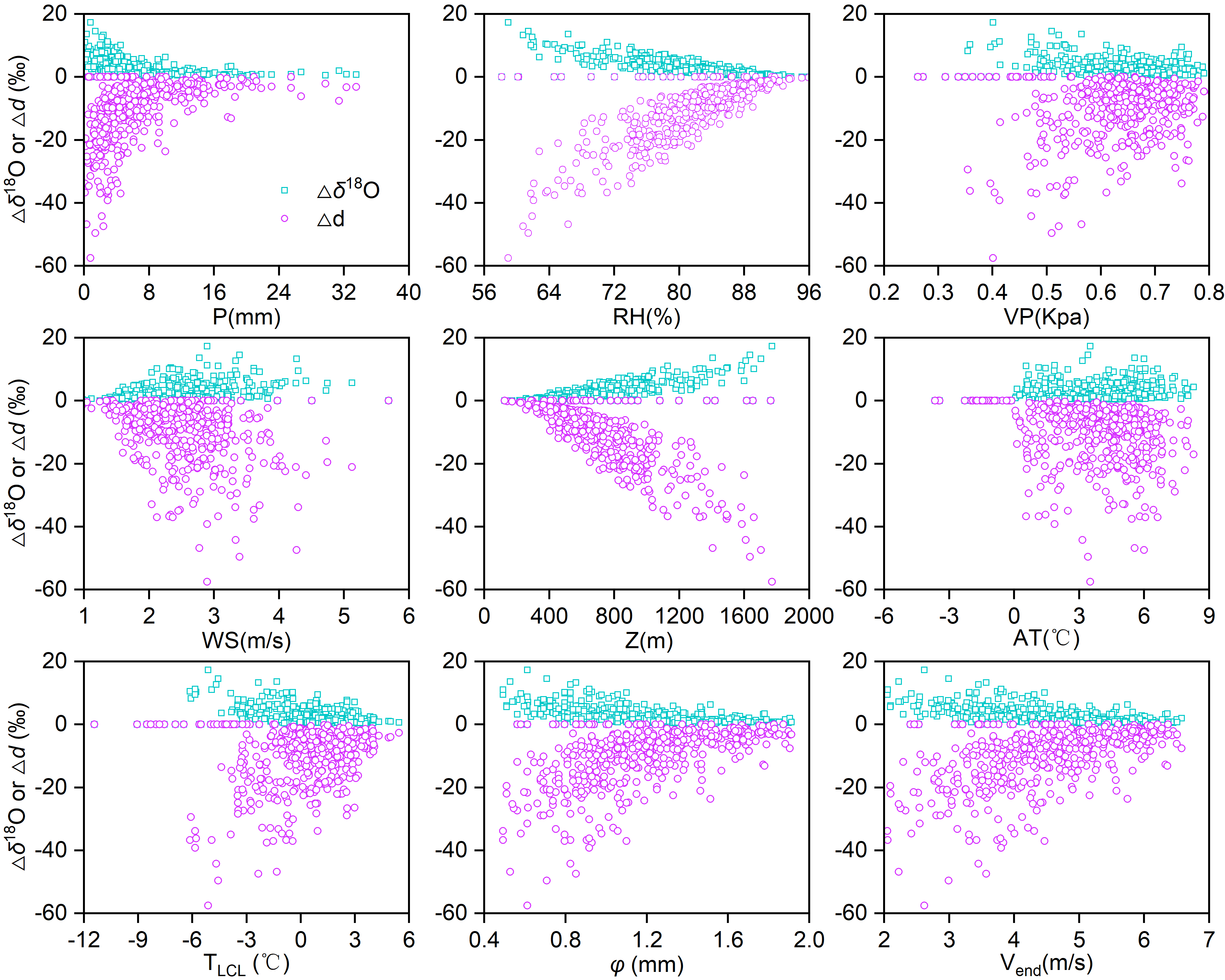 Δδ1?O和Δd與各氣象因子的關(guān)系