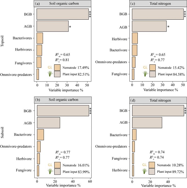 圖3?植物輸入與線(xiàn)蟲(chóng)營(yíng)養組對土壤養分變化的相對重要性