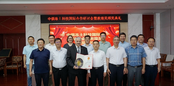 康世昌首先致辭,回顧了西北研究院與俄羅斯科學(xué)院梅爾尼科夫多年凍土研究所的合作交流歷史,以及在寒區環(huán)境與工程方面取得的突出合作成果等,展望了新形勢下中俄凍土科技國際合作的前景與重大意義,并祝賀亞洲寒區環(huán)境與工程國家中心外方主任ZHELEZNIAK MIKHAIL(熱哈雅茲尼亞克·米哈伊爾)院士獲2022年甘肅省外國專(zhuān)家“敦煌獎”。隨后,謝正團為熱哈雅茲尼亞克·米哈伊爾頒發(fā)獲獎證書(shū)并表示祝賀,感謝其積極推動(dòng)中俄在凍土研究領(lǐng)域的務(wù)實(shí)國際合作,為中俄友好交流與凍土科技合作研究作出的巨大貢獻。熱哈雅茲尼亞克·米哈伊爾表示感謝并發(fā)表獲獎感言。