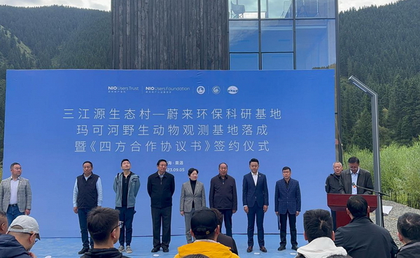 9月5日,中國科學(xué)院三江源國家公園研究院黨委副書(shū)記、紀委書(shū)記楊勇剛,海北站副站長(cháng)郭小偉,工程師樊博等受邀參加瑪可河野生動(dòng)物觀(guān)測基地(蔚來(lái)三江源生態(tài)村環(huán)??蒲谢兀┙遗苾x式并簽訂合作協(xié)議。
