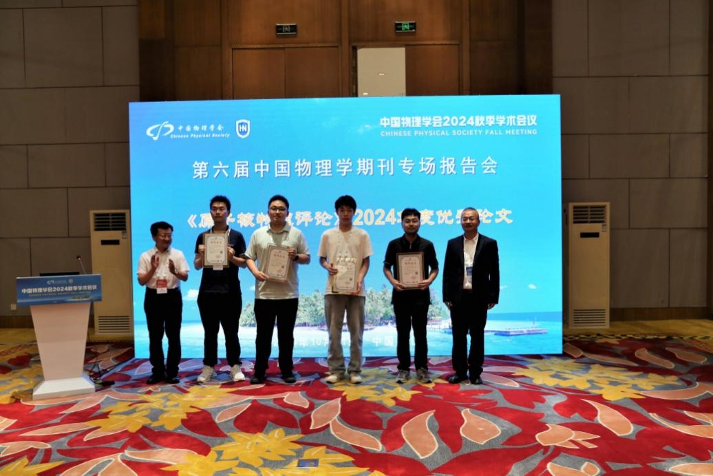 中國物理學(xué)期刊專(zhuān)場(chǎng)報告會(huì )已連續舉辦五屆。本屆專(zhuān)場(chǎng)報告會(huì )由中國物理學(xué)會(huì )出版工作委員會(huì )主辦,中國科學(xué)院物理研究所/海南大學(xué)承辦,《物理學(xué)報》《中國科學(xué): 物理學(xué) 力學(xué) 天文學(xué)》《科學(xué)通報》《原子核物理評論》等20多家國內物理學(xué)相關(guān)期刊共同舉辦?!对雍宋锢碓u論》編輯部首次參加此項專(zhuān)題活動(dòng)。近代物理所黨委原書(shū)記趙紅衛院士、副所長(cháng)王猛研究員為獲得《原子核物理評論》2024年度優(yōu)秀論文的作者代表頒獎。中國科學(xué)技術(shù)大學(xué)杰出講席教授、上??萍即髮W(xué)校長(cháng)封東來(lái)院士、近代物理所趙紅衛院士以及物理研究所曹則賢研究員分別做了特邀報告。