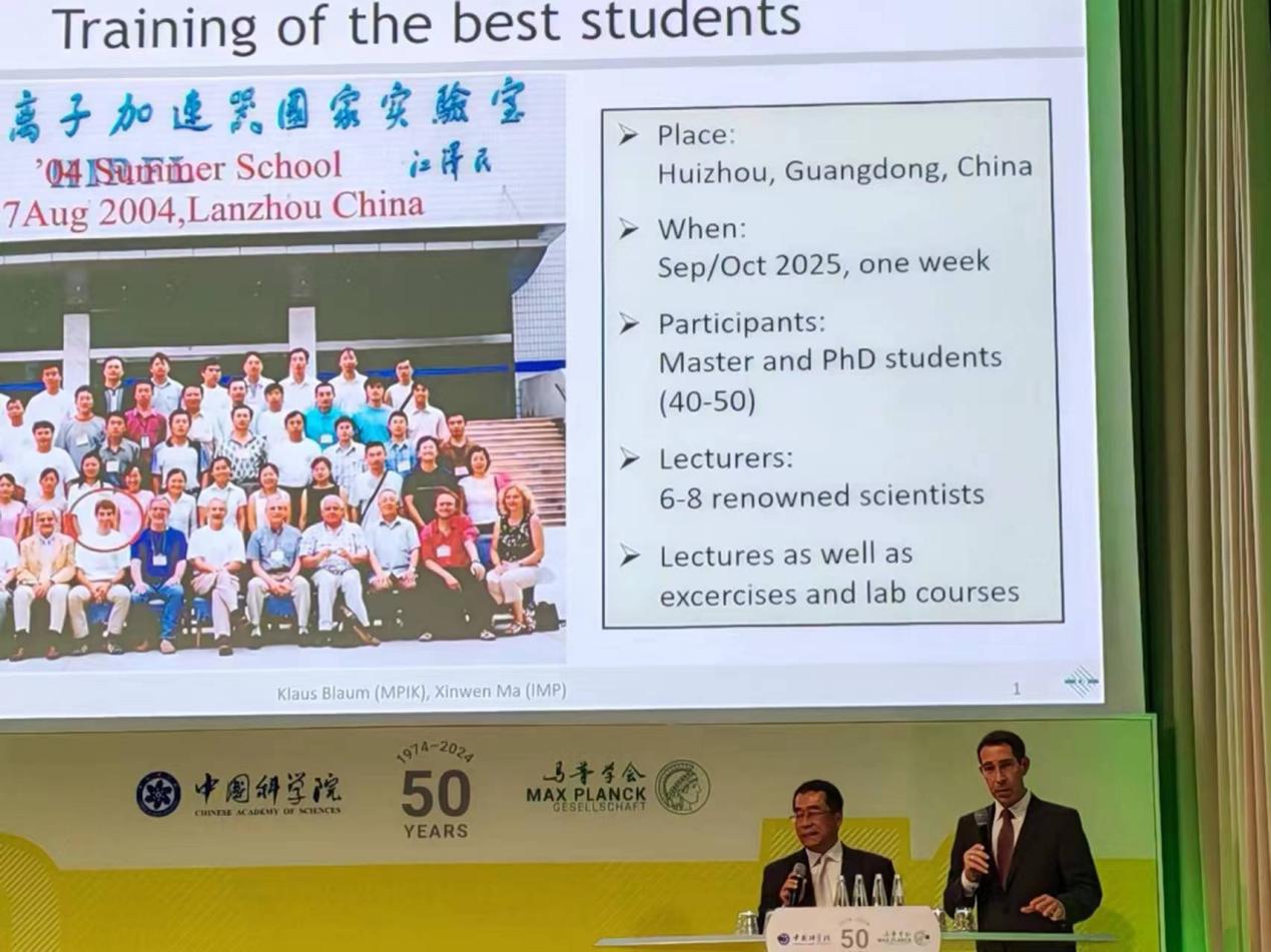 作為中國科學(xué)院與德國馬克斯·普朗克科學(xué)促進(jìn)學(xué)會(huì )合作五十周年系列慶?;顒?dòng)的重要組成部分,本次研討會(huì )的雙方代表參加了相關(guān)慶典活動(dòng)。近代物理所和馬普核物理所還將聯(lián)合承辦首屆“中國科學(xué)院與德國馬克斯·普朗克科學(xué)促進(jìn)學(xué)會(huì )暑期學(xué)?!?,該暑期學(xué)校預計2025年9月在中國惠州舉辦。