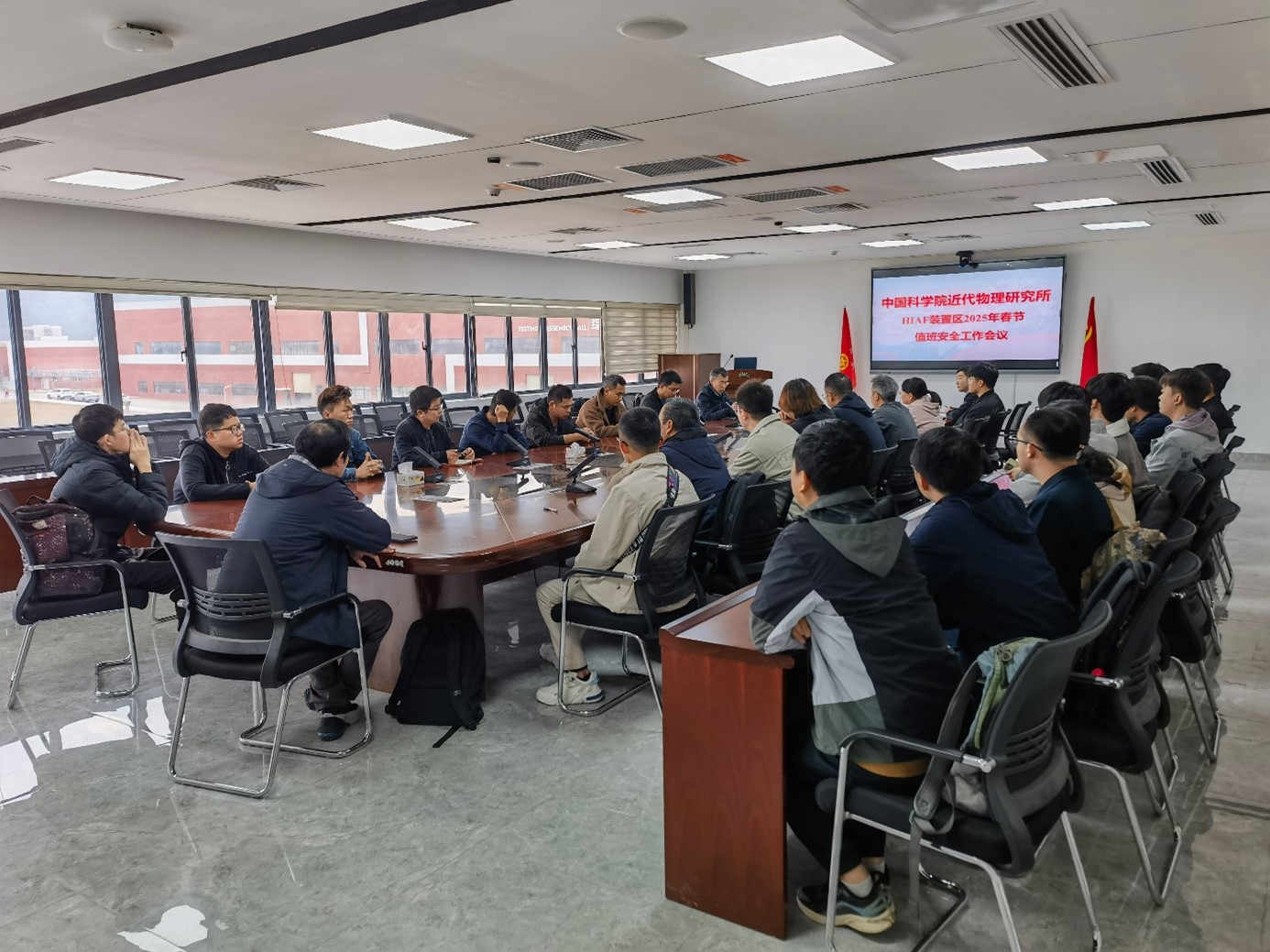 為確保春節期間研究所各項工作安全有序地推進(jìn),1月22日,中國科學(xué)院近代物理研究所副所長(cháng)楊建成在惠州黃埠園區召開(kāi)春節值班安全工作會(huì )議,并現場(chǎng)檢查兩裝置安全工作。