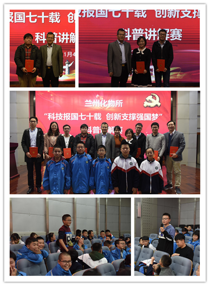 為慶祝中華人民共和國成立70周年和中國科學(xué)院建院70周年,弘揚科學(xué)精神,11月4日,中國科學(xué)院蘭州化學(xué)物理研究所舉辦了“科技報國七十載創(chuàng )新支撐強國夢(mèng)”科普講解賽。本次講解大賽邀請中科院蘭州分院中學(xué)七年級師生近300多人到場(chǎng)聆聽(tīng)。研究所共有4名青年科研人員和4名研究生參加比賽,5名學(xué)生代表和參賽選手共同擔任評委。