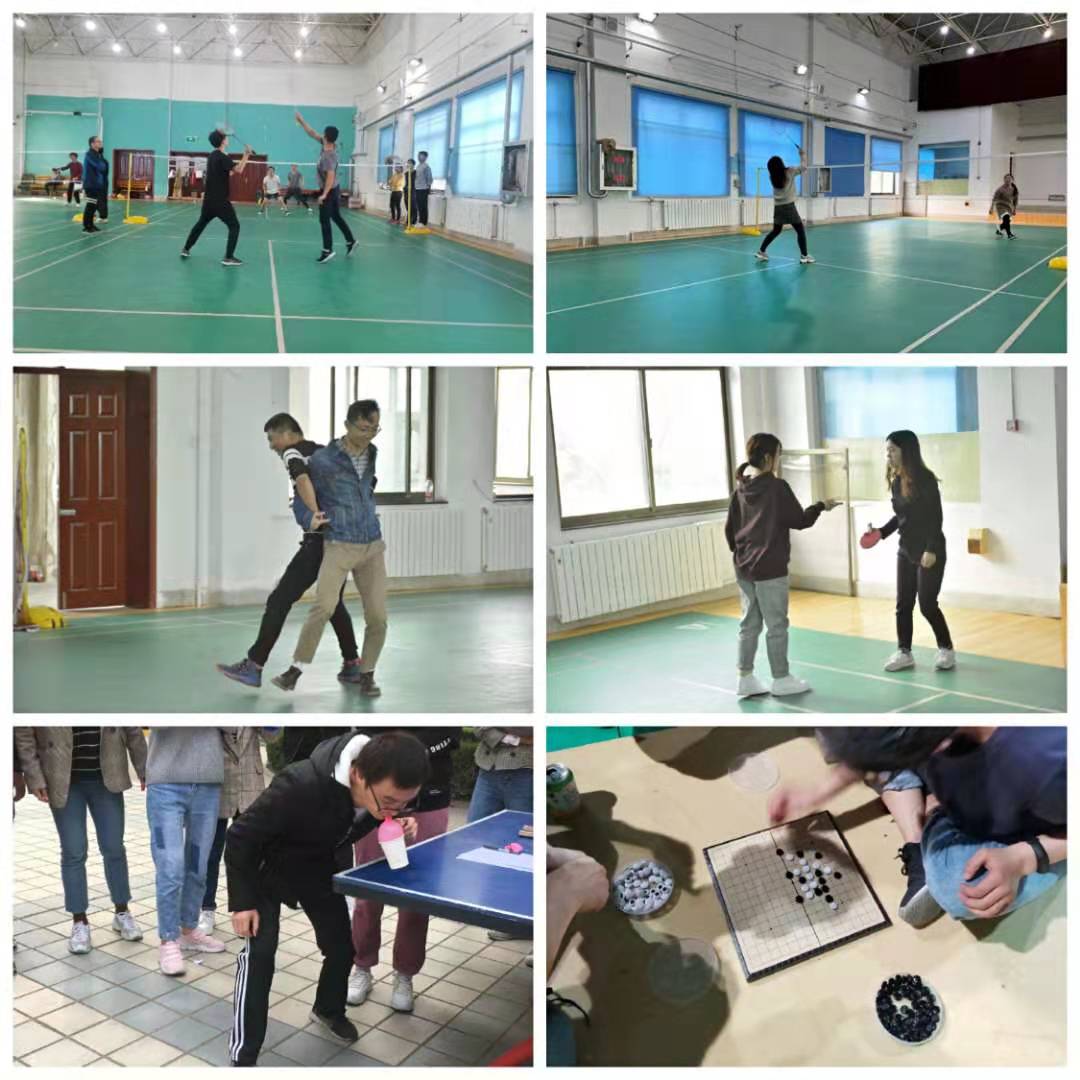 2018級碩士班舉辦了“‘羽’你同行”羽毛球比賽,共設男單、女單、男雙、混雙四個(gè)項目。2017級碩士班開(kāi)展了六人七足、3V3、捏鼻子轉圈直線(xiàn)行走接力賽、乒乓球雙打、氣球運紙杯等多種形式的體育活動(dòng)。2018級秋博班舉辦了羽毛球、單人跳繩、飛鏢、五子棋、沙包等系列活動(dòng)。2019級春博和秋博班聯(lián)合開(kāi)展了籃球賽、趣味乒乓球、背靠背運氣球、轉圈猜成語(yǔ)等文體活動(dòng)。蘇州研究院小組舉辦了女生單打、男生單打、男女混合雙打等形式豐富的羽毛球和乒乓球比賽。這些活動(dòng)不僅是智慧和體力的角逐,同時(shí)也彰顯了團結和協(xié)作的完美比拼。