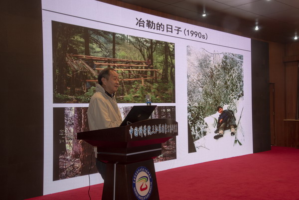 魏輔文院士以他的學(xué)術(shù)生涯為主線(xiàn),講述了其自20世紀80年代開(kāi)始從事大熊貓的研究工作,從最初的大熊貓野外調查、觀(guān)察,到率先將種群基因組學(xué)、宏基因組學(xué)、比較基因組學(xué)等新技術(shù)應用到大熊貓研究中,闡明了大熊貓的種群歷史、瀕危過(guò)程及演化潛力,揭示了大熊貓在食性轉換和特化歷程中如何在形態(tài)、行為、生理、遺傳和腸道微生物等方面產(chǎn)生適應性演化的規律;闡明了棲息地破碎化導致大熊貓孤立小種群崩潰的機制,推動(dòng)了國家大熊貓放歸和棲息地廊道建設工程的實(shí)施。魏輔文首次提出“保護演化生物學(xué)”和“保護宏基因組學(xué)”新分支學(xué)科,并介紹了穩定同位素分析技術(shù)和營(yíng)養幾何模型分析等新技術(shù)和新方法。魏院士結合自己30多年在保護生物學(xué)領(lǐng)域的經(jīng)歷,鼓勵大家在科學(xué)道路上堅持思考,不斷探索,勇于創(chuàng )新。此次報告大大開(kāi)拓了與會(huì )人員的學(xué)術(shù)視野,鼓舞了廣大科技人員的科研熱情。