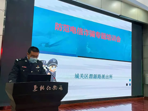 會(huì )議邀請蘭州市城關(guān)公安分局渭源路派出所張晟警官作了如何防范電信詐騙的報告,講解了電信詐騙的發(fā)展史、詐騙手段及應對措施,用實(shí)際案例進(jìn)行警示教育,使大家進(jìn)一步學(xué)習了預防電信網(wǎng)絡(luò )詐騙知識,提高了對電信詐騙犯罪的識別和應對能力。