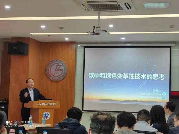 4月25日,中國科學(xué)院院士、中科院過(guò)程工程研究所張鎖江研究員應邀訪(fǎng)問(wèn)中國科學(xué)院蘭州化學(xué)物理研究所蘇州研究院,并作了題為“碳中和綠色變革性技術(shù)的思考”的學(xué)術(shù)報告。