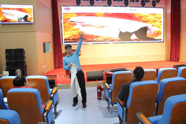 王尚華從構筑社會(huì )消防安全“防火墻”工程提出的消防“三懂三提示四個(gè)能力”建設入手開(kāi)展了消防安全講授?!叭奔炊馂念A防知識,懂單位防火的措施,懂撲救火災的方法?!叭崾尽?,既提示公眾所在場(chǎng)所火災危險性,提示公眾所在場(chǎng)所安全逃生路線(xiàn)、安全出口的具體位置、遇到火災等緊急情況如何正確逃生、自救,提示公眾所在場(chǎng)所內滅火器、逃生設備器材具體放置位置和使用方法?!八膫€(gè)能力”,即檢查和整改火災隱患能力,撲救初期火災能力,組織引導人員疏散逃生能力,消防安全知識宣傳教育培訓能力。王尚華用幽默風(fēng)趣的語(yǔ)言,結合大量的現實(shí)案例,給大家上了一堂生動(dòng)活潑的安全教育課,深受參會(huì )職工和學(xué)生的歡迎。
