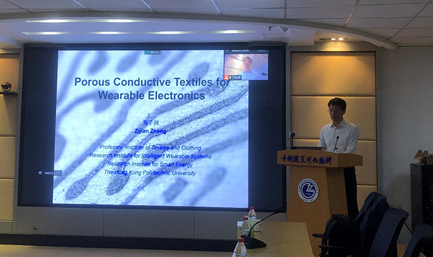 4月19日,香港理工大學(xué)鄭子劍教授應邀到中國科學(xué)院蘭州化學(xué)物理研究所進(jìn)行學(xué)術(shù)交流,并作了題為“Porous Conductive Textiles for Wearable Electronics”的學(xué)術(shù)報告。相關(guān)領(lǐng)域科研人員100余人參加了線(xiàn)上和線(xiàn)下報告會(huì )。