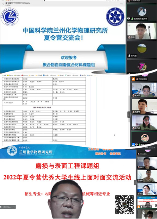 7月10至15日,中國科學(xué)院蘭州化學(xué)物理研究所舉辦了2022年“蘭化行,科研情”優(yōu)秀大學(xué)生線(xiàn)上夏令營(yíng)。本次夏令營(yíng)與中科院蘭州教育基地“我的科學(xué)夢(mèng)”優(yōu)秀大學(xué)生暑期學(xué)校同期舉行,來(lái)自吉林大學(xué)、青海大學(xué)、山東師范大學(xué)等高校的70名優(yōu)秀大學(xué)生參加了夏令營(yíng)。結合疫情防控要求,夏令營(yíng)以線(xiàn)上形式舉行。