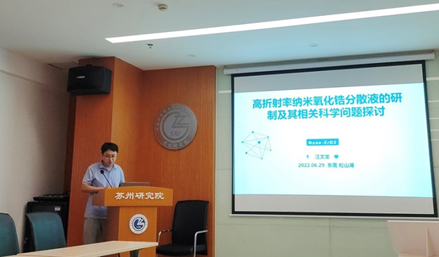 汪文龍研究員介紹了高折射率納米氧化鋯分散液的用途,其主要應用在手機、電腦、電視等液晶顯示器的背光模組中,以增強其發(fā)光亮度和提高清晰度。系統介紹闡述了高折射率納米氧化鋯分散液的研究進(jìn)展,分享了其課題組在該領(lǐng)域課題的提出、材料的設計以、與企業(yè)的合作開(kāi)發(fā)交流,以及課題進(jìn)展中遇到的問(wèn)題和瓶頸。