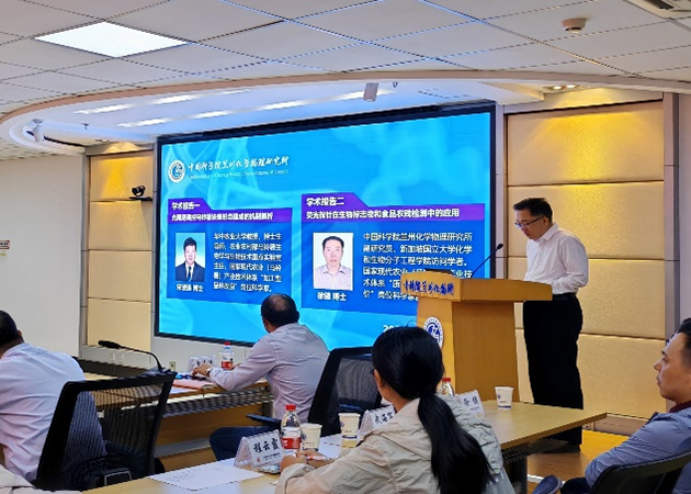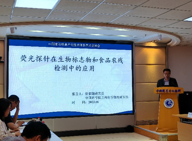 宋波濤教授介紹了光周期信號調控馬鈴薯開(kāi)花與結薯的分子機制,提出了研究過(guò)程中發(fā)現的新問(wèn)題。蘭州化物所環(huán)境材料與生態(tài)化學(xué)研究發(fā)展中心材料與分離分析課題組徐建副研究員作了題為“熒光探針在生物標志物和食品農殘檢測中的應用”的報告,介紹了熒光探針的發(fā)展歷程、生物標記物的檢測及熒光探針在食品農殘中的應用。