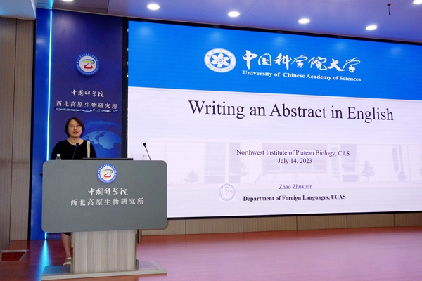 7月14日,中國科學(xué)院西北高原生物研究所學(xué)術(shù)英語(yǔ)寫(xiě)作培訓在1號樓學(xué)術(shù)報告廳舉行,此次培訓特別邀請了中國科學(xué)院大學(xué)外語(yǔ)系于華教授、孟艷麗副教授和趙竹軒講師進(jìn)行授課,一百七十余名在職職工和研究生參加了此次培訓,培訓活動(dòng)由西北高原所副所長(cháng)楊其恩主持。