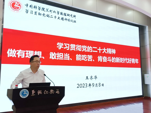 蘭州化物所黨委書(shū)記王齊華作了題為“學(xué)習貫徹黨的二十大精神 做有理想敢擔當能吃苦肯奮斗的新時(shí)代好青年”的專(zhuān)題黨課,并對全體研究生同學(xué)提出希望和要求。希望同學(xué)們以習近平新時(shí)代中國特色社會(huì )主義思想為指導,認真學(xué)習領(lǐng)會(huì )黨的二十大精神、習近平總書(shū)記關(guān)于科技創(chuàng )新的重要論述和指示批示精神。面向世界科技前沿、面向國家重大需求、面向國民經(jīng)濟主戰場(chǎng)、面向人民生命健康,刻苦鉆研,勇于創(chuàng )新,大力傳承弘揚科學(xué)家精神,培養高尚的品格、積淀豐厚的學(xué)養、保持良好的心理狀態(tài),努力成長(cháng)為對國家、對民族有用的創(chuàng )新人才,把個(gè)人的理想追求融入黨和國家事業(yè)之中,為早日實(shí)現高水平科技自立自強貢獻青春力量和智慧。