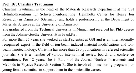 報告人:Christina Trautmann 教授 (德國重離子研究中心、NIMB主編)
