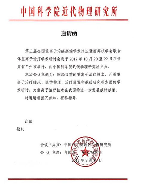 第三屆全國重離子治療高端論壇暨西部核學(xué)會(huì )聯(lián)合體重離子治療學(xué)術(shù)研討會(huì )將于2017年10月20-22日在蘭州召開(kāi),將以專(zhuān)家報告和討論為主,為各方交流提供更加充裕的時(shí)間,我們竭誠歡迎您及您的團隊成員蒞臨指導。